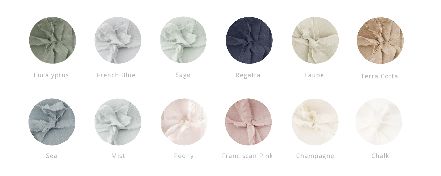 Our silk ribbon adds a delicate, muted accent to our envelope and paper colors.