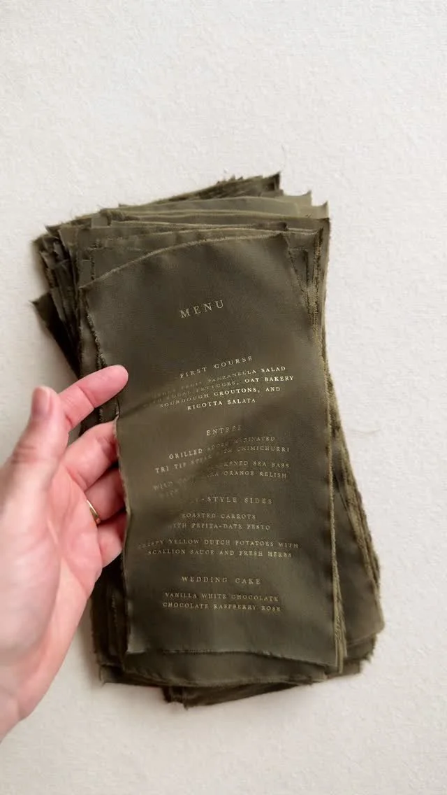 • Once we understand your style and aesthetic, we will move on to the design concept phase. This phase includes design drafts that reflect the feeling of your wedding with material concepts that create texture and depth, and printing methods that bring the designs to life.